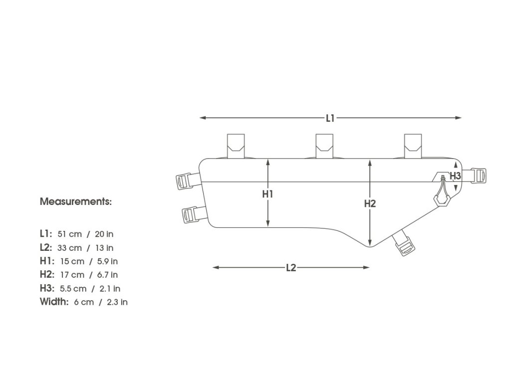 Nepromokavá rámová brašna - odolný materiál, který není sešitý, ale svařovaný. Díky bezešvé technologii je brašna 100% nepromokavá. Velikost a tvar brašny jsou dimenzovány tak, aby pasovaly do rámů různé velikosti a geometrie.