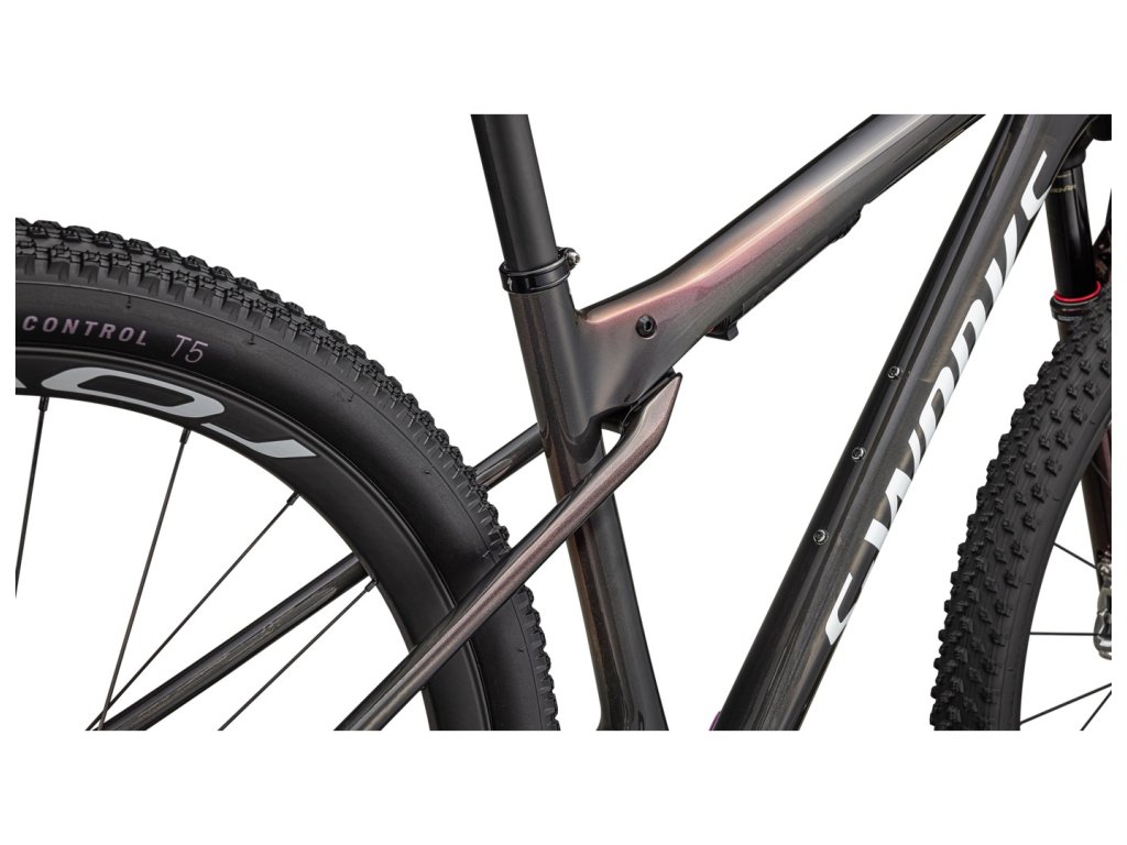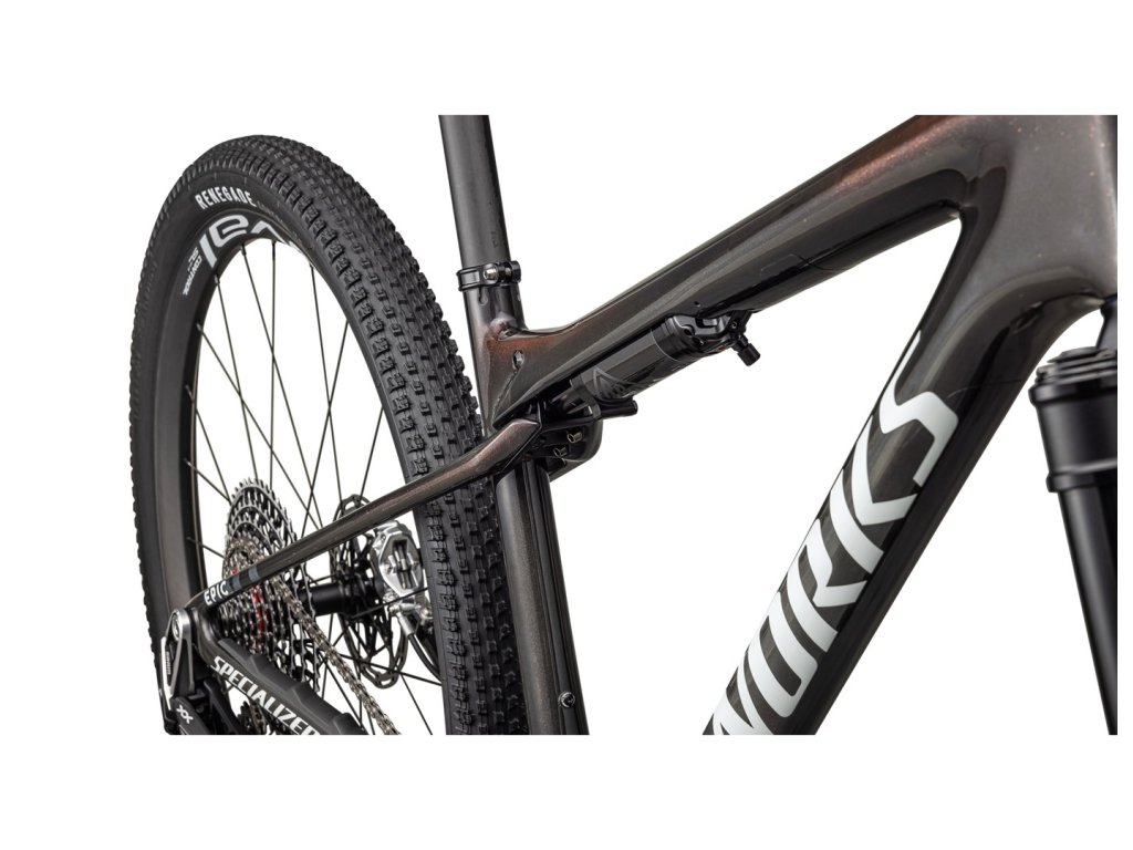 RÁM NAD RÁMEC OČEKÁVÁNÍ: S Epic World Cup získáš náskok díky nekompromisnímu přenosu síly, jeho životnosti a ovladatelnosti. Promyšlený rám s vylepšenou konstrukcí je pevnější, má lepší torzní tuhost a tlumič schovaný v horní rámové trubce. Revoluční technologii i geometrii jsme nakonec zabalili do dosud nejpokrokovějšího kompositu v historii Specialized.