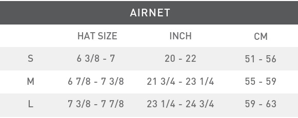 - Airnet také obsahuje náš ultra-lehký systém Mindset HairPort micro-dial fit, díky kterému je perfektní fit velmi snadno dosažitelný. Systém chlazení Dimension Cooling System s hlubokými vnitřními kanály, velkými průduchy a vyrovnanými výfukovými otvory navíc přináší skvělé proudění vzduchu.