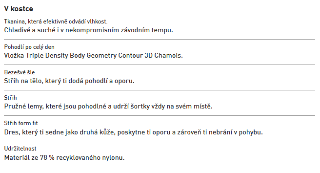 Bezešvé šle zajišťují maximální prodyšnost a elastické zakončení nohavic drží pevně na místě po celou jízdu.