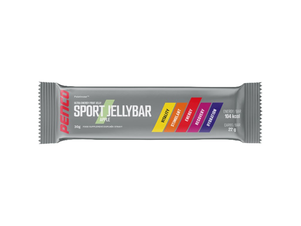 Penco Sport JellyBar je ovocné želé pro sportovce s 50 % obsahem ovoce, s Palatinosou a minerály. Doporučujeme před a během výkonu jako skvělou alternativu k energetickým gelům a tyčinkám.