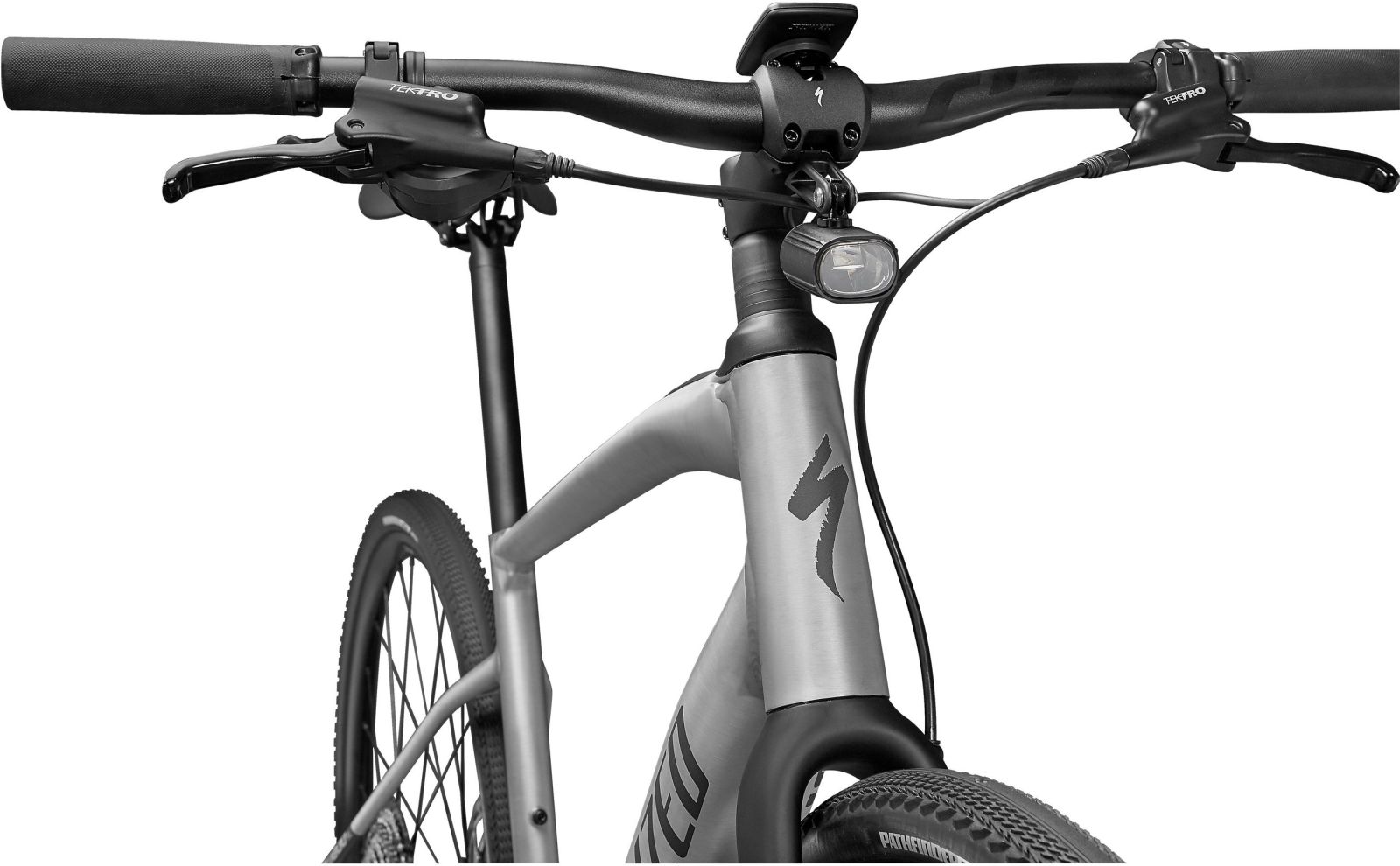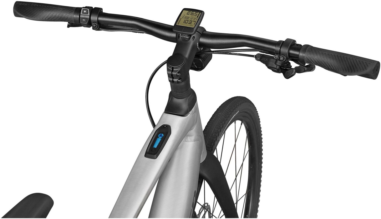 | RÁM | E5 Aluminum, Fitness/Transportation Geometry, bottom bracket motor mount, fully integrated down tube battery, internal cable routing, fender/rack mounts, Smooth Welds, reflective graphics |