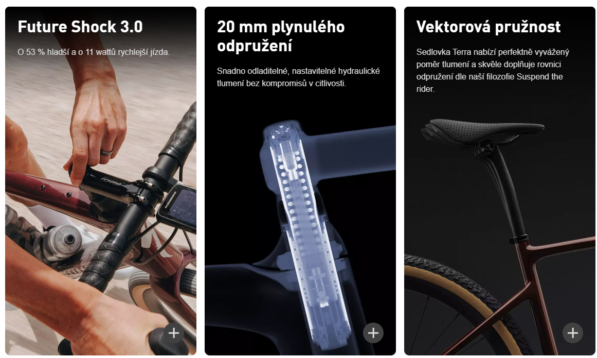 Technologie tlumení Future Shock 3.1, náš nejobratnější rám, průchodnost pro obrovské pláště a největší úložný prostor v kategorii gravel kol na světě – to vše nyní ještě lepší. Vydej se za horizont, postav se na pódium – Diverge zvládne s přehledem obojí.