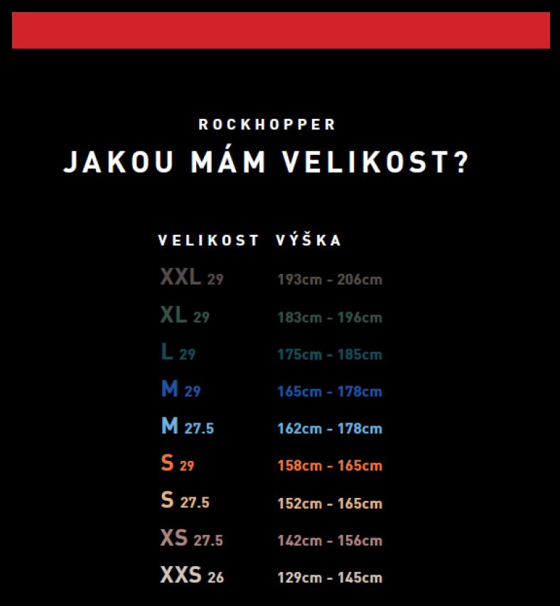 • S cílem zajistit, aby Rockhopper sedl každému a současně poskytl ten nejlepší výkon, jsme spárovali každou velikost rámu Rockhopper s optimální velikostí zapletených kol. Výsledkem je Rockhopper, který sedne každému jezdci a díky optimální velikosti sady kol přinese v každé velikosti optimální ovládání.