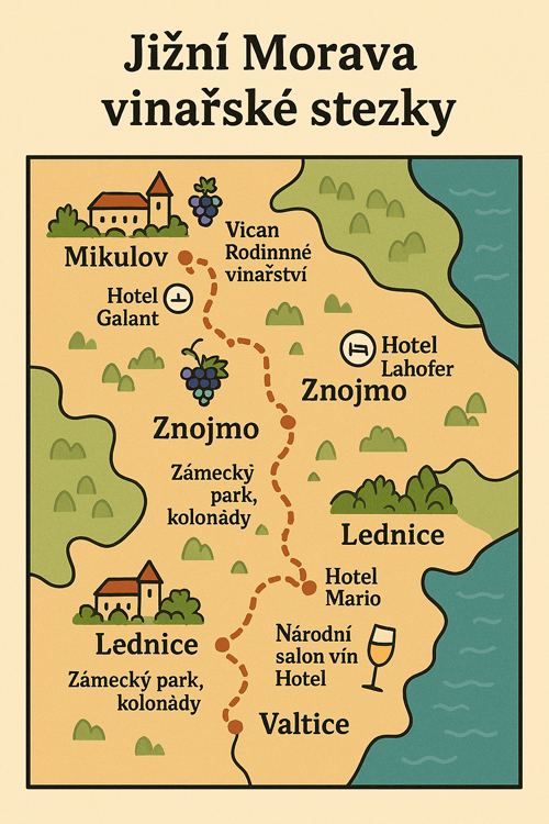 - Trasy vedoucí mezi vinicemi a historickými městy jako Mikulov nebo Znojmo
