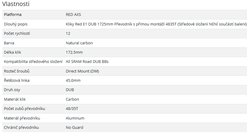 › Komponenty › Pohon (Kazety, řetězy apod.) › Kazety a převodníky › Kliky s převodníky SRAM AM FC RED E1 DUB 172,5 DM 48/35