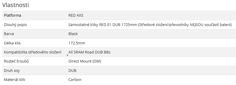 Samostatné kliky RED E1 DUB 1725mm (Středové složení/převodníky NEJSOU součástí balení)