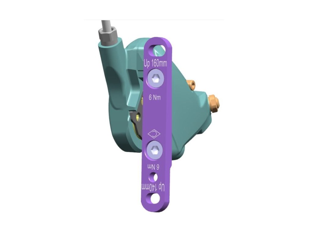 Adaptér předního brzdiče je nutné použít pokaždé, pokud je přední brzdič vyroben pro velikost kotouče 140 mm. Adaptér umožní uchycení brzdiče k přední vidlici a v případě jeho otočení o 180 stupňů upraví vzdálenost brzdiče od vidlice tak, že je možné použít kotouč o průměru 160 mm.