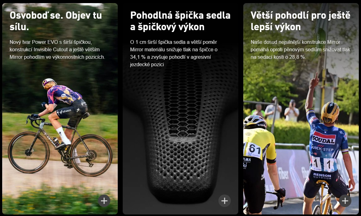 Sedlo je vyrobené dle filozofie Body Geometry a dat od profesionálních závodníků na míru dynamickým jezdcům, kteří se v sedle pohybují zepředu dozadu. Takhle pohodlné sedlo nenajdeš – o 34,1 % méně tlaku vpředu, o 28,8 % méně tlaku na sedací kosti oproti pěnovým sedlům a o 18 % méně tlaku uprostřed sedla oproti Power Mirror. Power EVO tě podpoří v každé pozici.