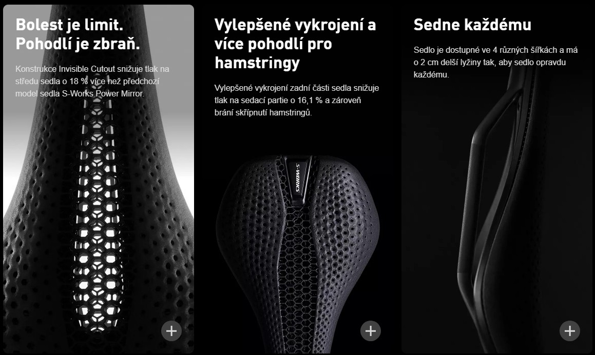 O 34,1 % méně tlaku na špičce sedla a o 28,8 % nižší tlak na sedací kosti
