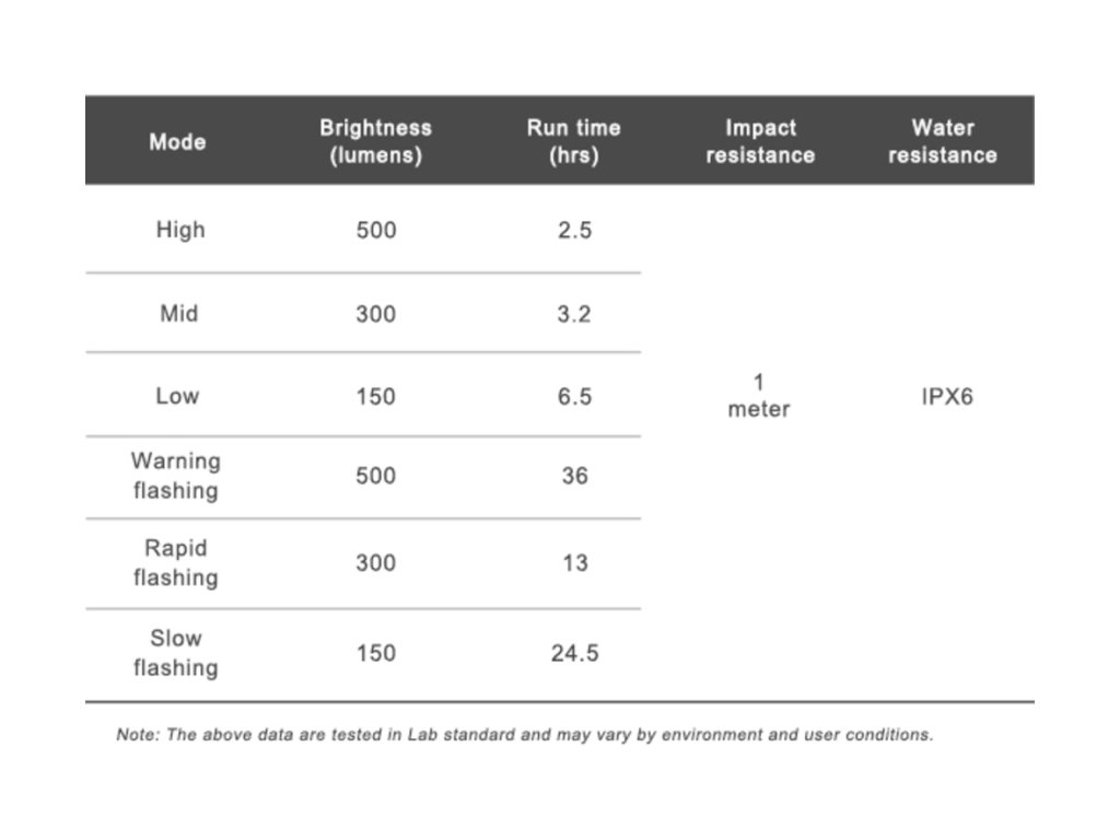 - Dvě vysoce účinné LED diody poskytují až 500 lumenů pro noční jízdu