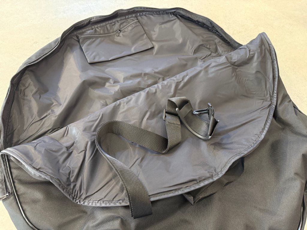 Přepravní vak na zapletená kola. Vak je vhodný pro všechny typy kol. Lze použít také k uskladnění zapletených kol. Uvnitř vaku je malá kapsa na příslušenství a popruh.