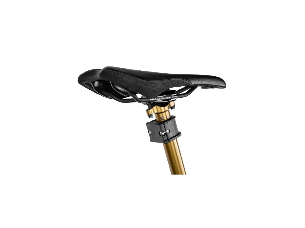 Adaptér slouží k stabilnímu upevnění strapu podsedlové brašny ke kluzné ploše teleskopické sedlovky. Zároveň pak slouží jako doraz teleskopu a vymezuje tak jeho dráhu.