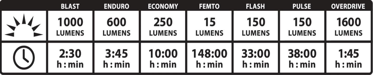 - Maximální doba výdrže: 148 hodin ( ve Femto modu )