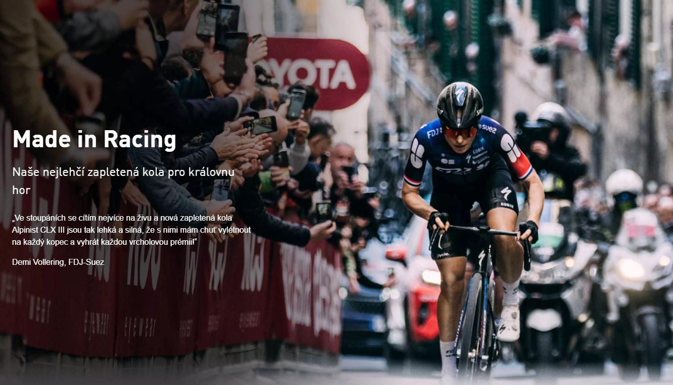 Navržené pro ty, co touží po puntíkovaných dresech a milují blesková stoupání. Roval Alpinist CLX III jsou naše nejlehčí silniční zapletená kola – váží pouhých 1 131g a oproti předchozímu modelu jsou tak o dalších 134 g lehčí. Nové ultralehké náboje a karbonové paprsky Roval Aero Composite od firmy Arris šetří 103,5 g a přitom jsou o 20 % pevnější než ocel. Důkazy již můžete vidět ve výsledkových listinách – Demi díky nim zvládla stoupání na Tourmalet o 5 sekund rychleji než kdy dříve.