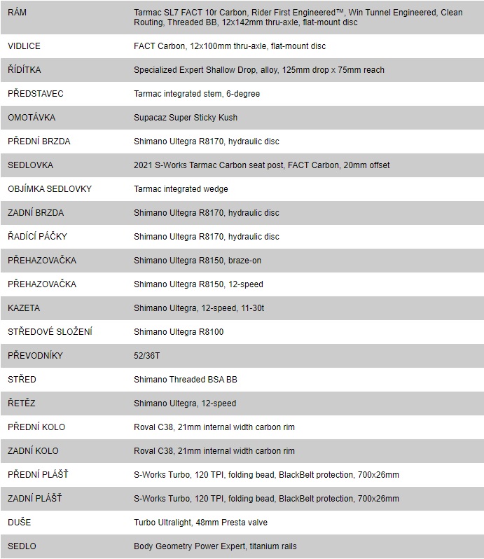 Tento nový Tarmac s kompletní elektronickou sadou Shimano Ultegra Di2, která zajistí ostré a rychlé řazení, a pneumatikami S-Works Turbo 700x26 mm, které vás udrží v pohybu, poskytuje výkon za přijatelnější cenu.
