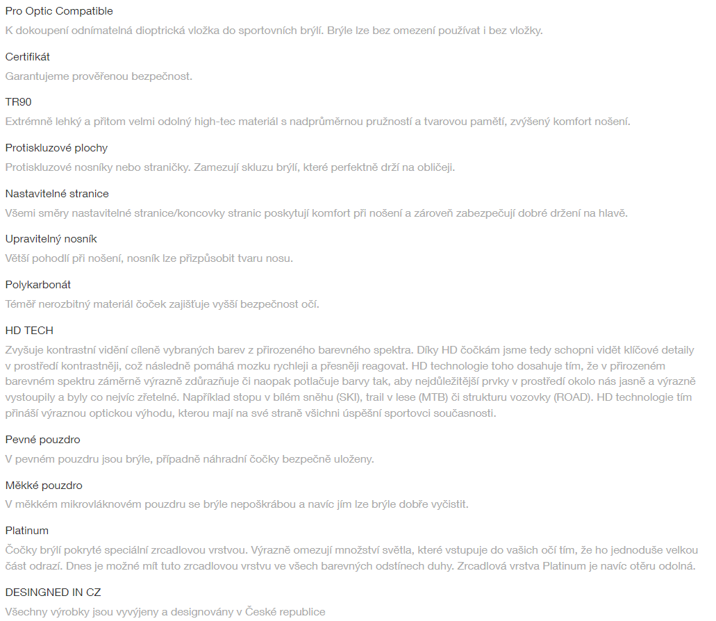 - Odolnost brýlí garantuje prověřená bezpečnost dle normy CE EN 174: 2001