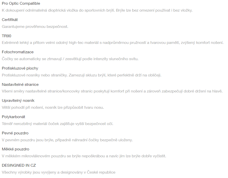 - Upravitelný nosník: brýle lze přizpůsobit téměř každému typu nosu a díky tomu perfektně sedí