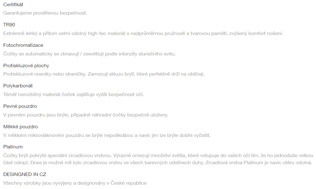 • Odolnost brýlí garantuje prověřená bezpečnost dle normy CE EN 174: 2001
